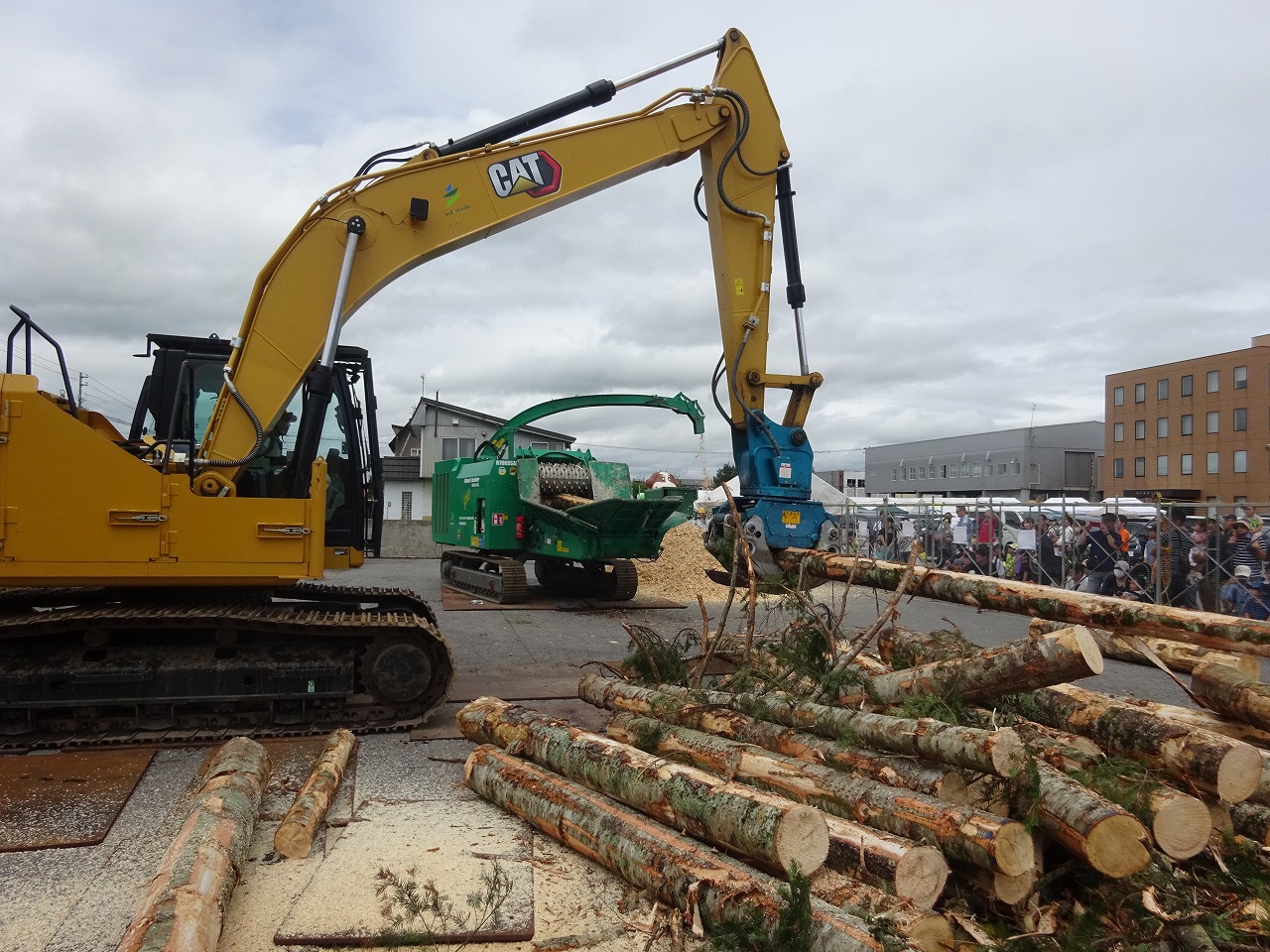 当社ブースではいつものように製材やチップなどのサンプルも展示し、触ってもらいながらどのようなお仕事をするのか、イメージを掴んでもらいながら説明を聞いていただきました。